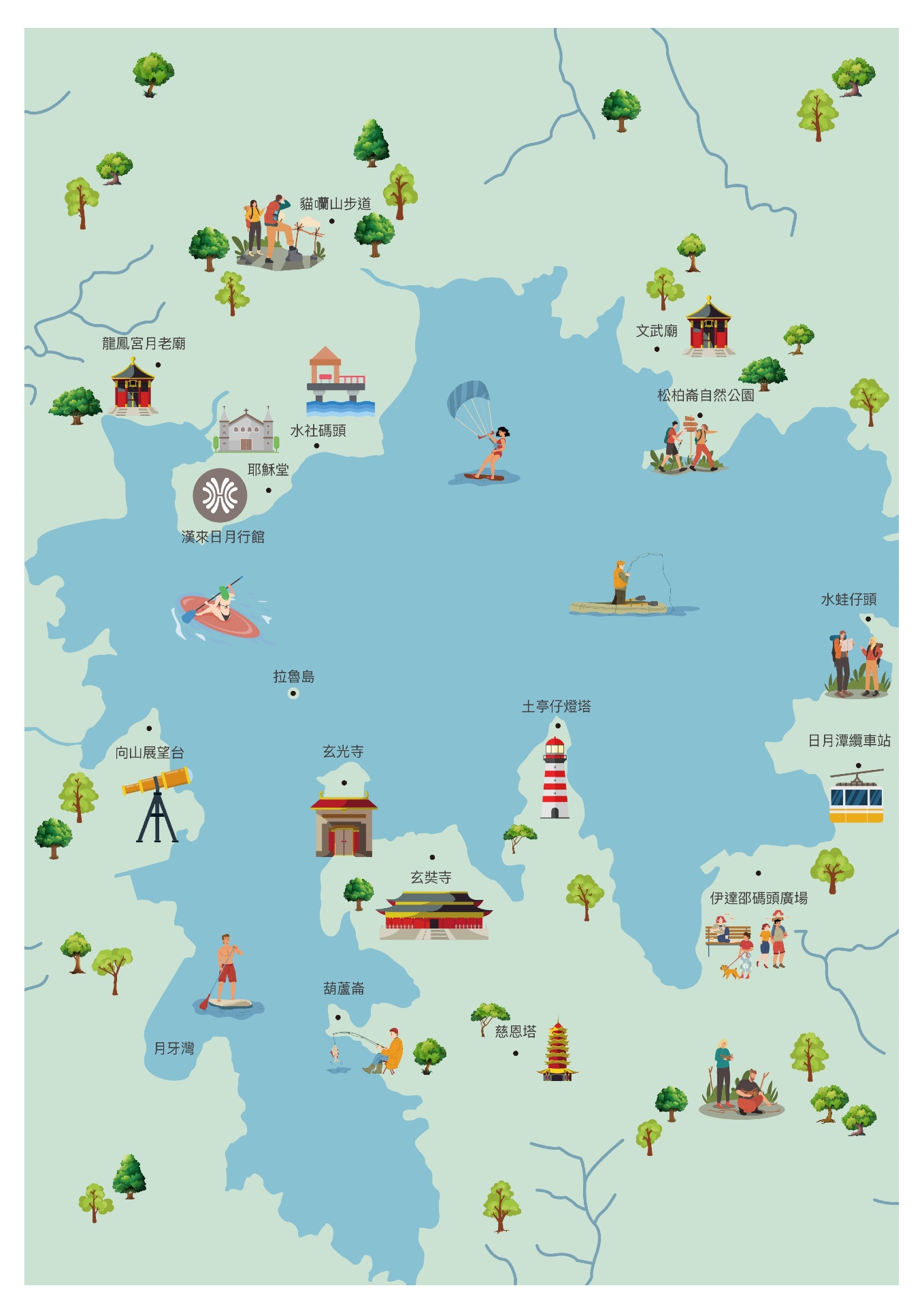 ※ 台湾鉄道 台中駅より:「南投客運」バスにて日月潭バスターミナルまでお越しください(所要時間約2時間)。バスターミナルより徒歩約15分で当館に到着します。