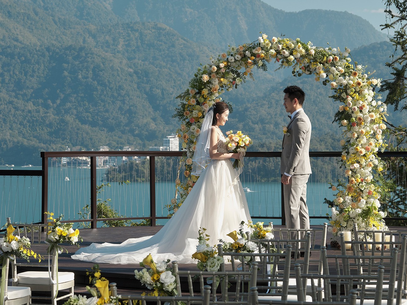 湖畔證婚:日月潭戶外湖畔證婚儀式,讓山光水色見證永恆承諾 漢來婚禮 | 文定儀式 | 戶外證婚
